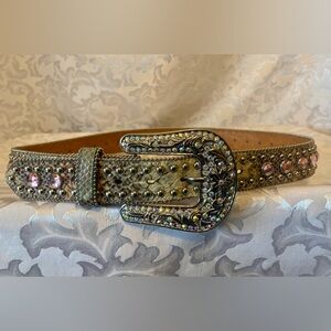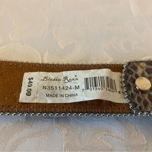 Gotta love all the western belt girls sport at rodeos and state fairs. I always keep a lookout for them. This medium Blazin Roxx is normally $49.00. Look at that snakeskin print. All those pink and diamond-like rhinestones. This flashy accessory will really catch an eye or two.