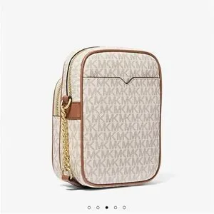 Michael Kors Jet Set Travel Medium Logo Brown and Cream Crossbody Bag