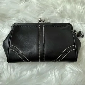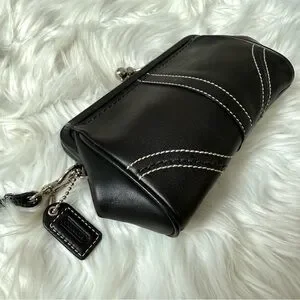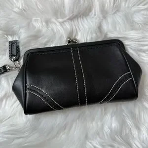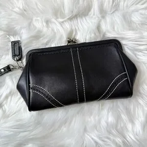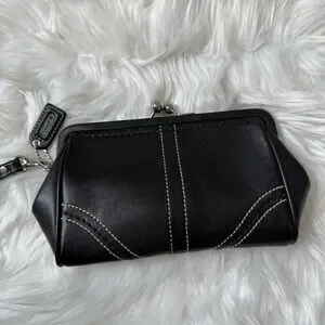 Coach RARE Kisslock Y2K Black Leather Clutch Wristlet