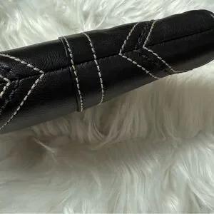 Coach rare , Elegant black leather clutch wristlet bag with stylish stitching. Perfect for any occasion.