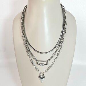 Christian Siriano Triple Chain Rockstar Heart Necklace Silver Tone