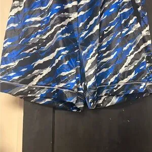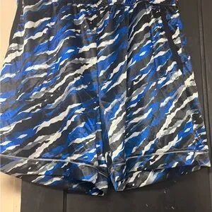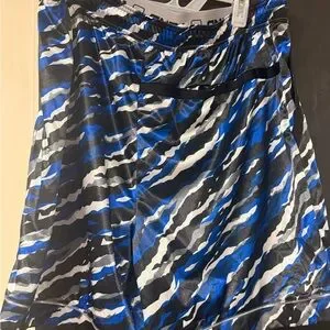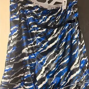 Stylish AND1 athletic shorts in blue and black. Perfect for sports and casual wear.