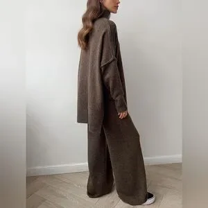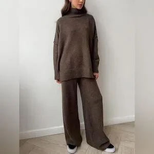 2-Piece Turtleneck Sweater and Wide Leg Pants Set
