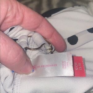 Stylish one-piece swimsuit with polka dots and stripes. Features a chic cut-out design.