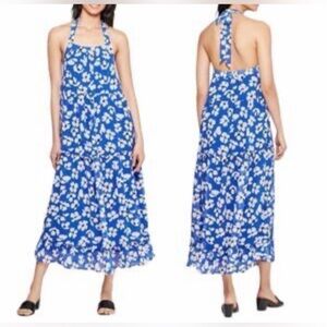 WhoWhatWear Blue Floral Halter Midi Dress. Size S. EUC
