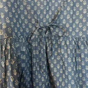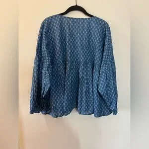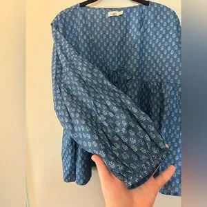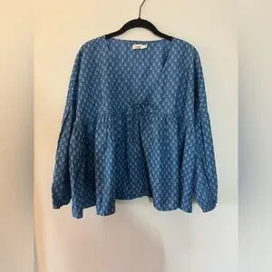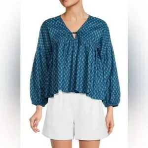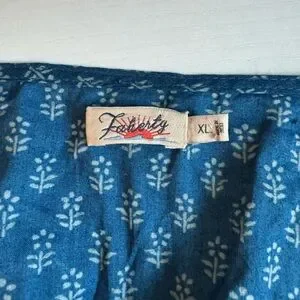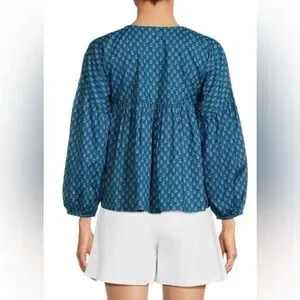Faherty Women’s Navy Lyla Organic Cotton Floral Drop Shoulder Top Blouse - XL