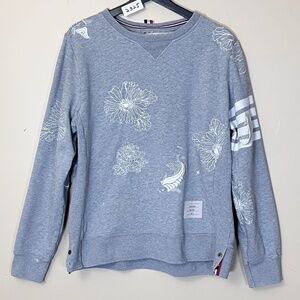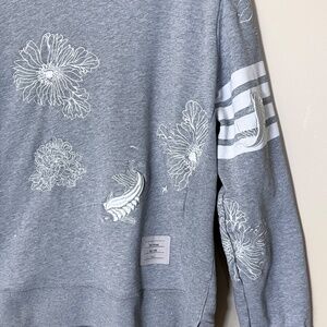 Thom Browne Embroidered Koi Chrysanthemum Sweatshirt - Men's Size 4 - Gray