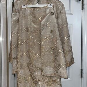 Stunning gold brocade jacket and skirt set with intricate patterns. Perfect for special occasions. Gold iridescent. Skirt is 34 inches pictures do not show the beauty of this