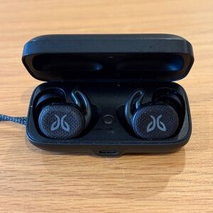 Jaybird wireless earbuds in black. Comes with a charging case.
