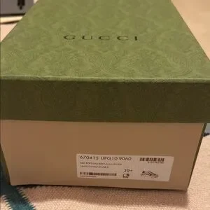 New, never worn. Italian Size 39 Stylish white sneakers with iconic green and red web detail. Perfect for a trendy look.