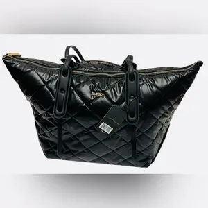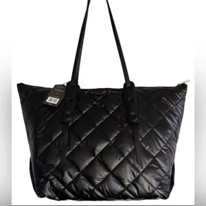 TUTILO QUILTED GRID TOTE BAG WATERPROOF SOFT HIGH CAPACITY WOMENS BLACK COLOR
