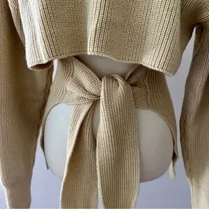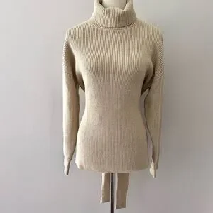 Free People Beach Reed Tan Tie Back Turtleneck Sweater Medium