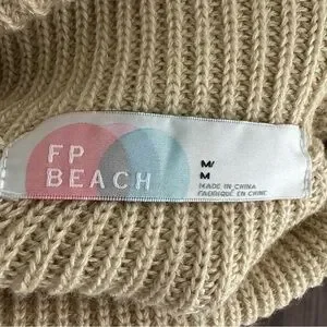 Like New Free People Beach Reed Tan Tie Back Turtleneck Sweater Medium