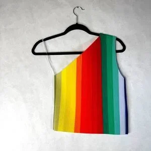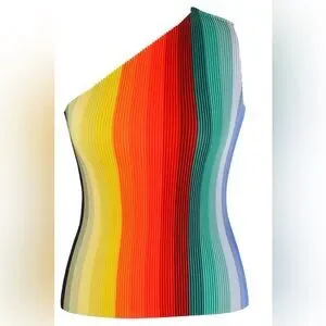 KITTY JOSEPH Chroma One Shoulder Top - Reversible Rainbow - Sz S