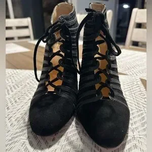 Christian Louboutin Black Leather and Suede Inverness Booties Size 38