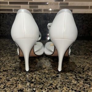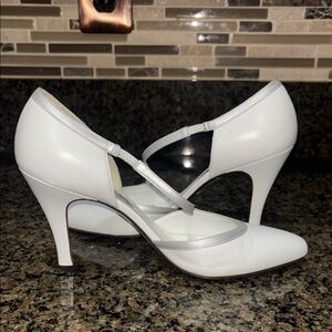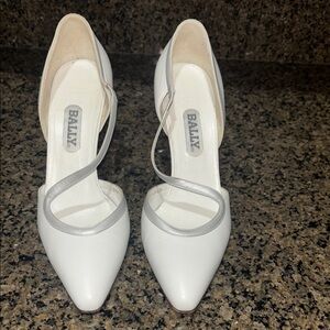 Bally Women's White Leather Heels with silver trim