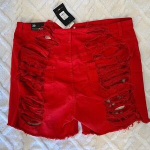 2X fashion nova set shredded shorts. Red pair is new with tags. Black is slightly warn