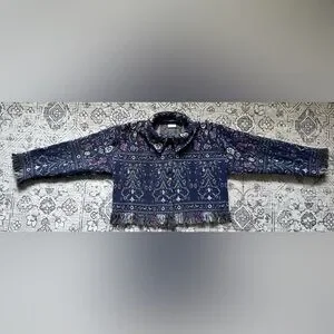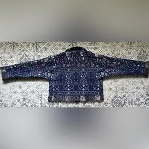 Handmade Upcycled Floral Blanket Jacket with Fringe