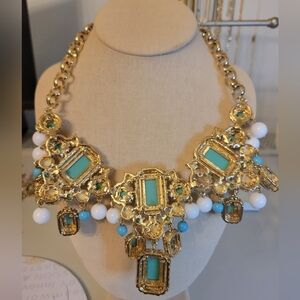 Banana Republic Elegant Gold and Turquoise Statement Necklace