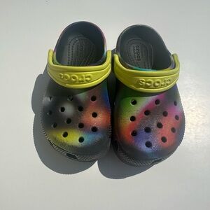 Brighten up your child's day with these vibrant Crocs clogs. Featuring a playful multicolor design, these shoes are perfect for any adventure. Comfortable and easy to wear, they are a must-have for active kids.