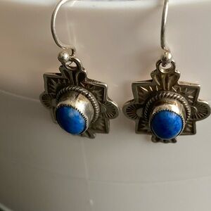 Elegant Leo Feeney silver earrings featuring a striking blue lapis gemstone. Perfect for adding a touch of sophistication to any outfit.