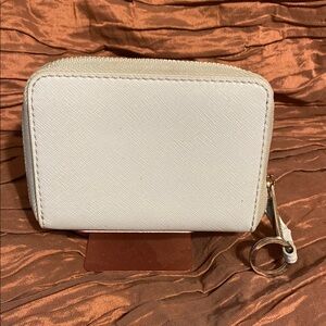 Chic Tory Burch wallet baby blue color with keychain. Features a stylish logo detail. Worn but no tears great shape.