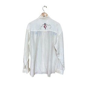 Montello Womens Vintage Shirt Size XL White Silk Oversized Ornament Blouse