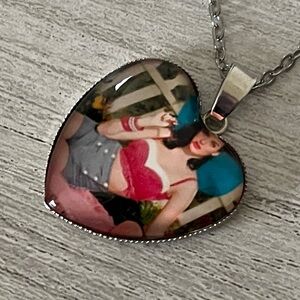Heart-Shaped Silver Photo Pendant Necklace Young Katy Perry