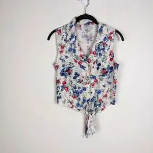 Vintage 90s Button Down Tie Front Cropped Blouse Top small