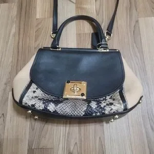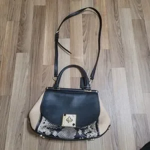 Coach Drifter Carryall In Colorblock Exotic Embossed Leather Black Animal Print. Pre owned condition small flaw missing toe black faux buttons on the clip as pictured. Thought about removing them but ultimately up to buyer. Selling as is. Please look at all photos.