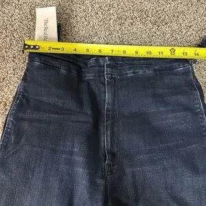 High rise. Zip fly. On-seam pockets. Adjustable waist tabs.