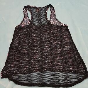 Mossimo Supply Co Tank top with black mesh back and black with geometric design front. Slight high/low. Size Medium.