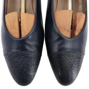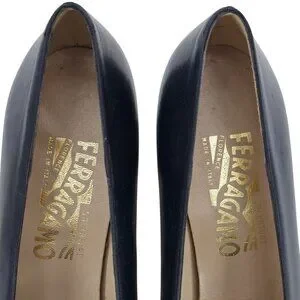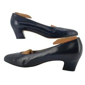 Vintage Salvatore Ferragamo Womens 9AA Navy Leather Reptile Embossed Dress Pumps