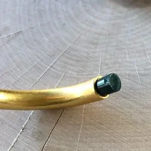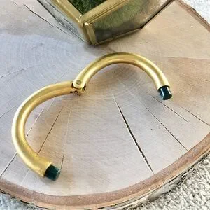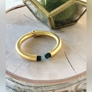 Sleek, elegant brass hinge bracelet from Madewell with dark green stone end caps.