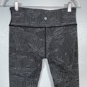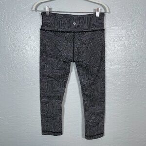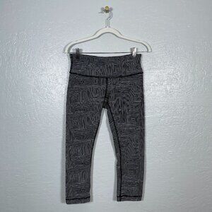 Lululemon Women 6 Black White Jacquard Wunder Under Crop III Leggings Wicking