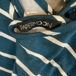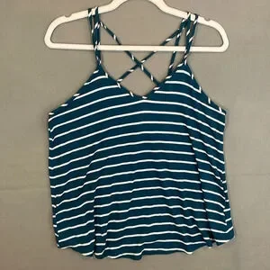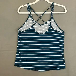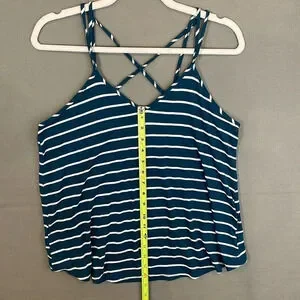 Papermoon Strappy Striped Teal White Loose Fit Tank Top Women Size Small