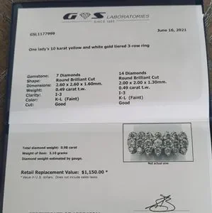 1 CTW 10k YG and WG Tiered Diamond 3 rows