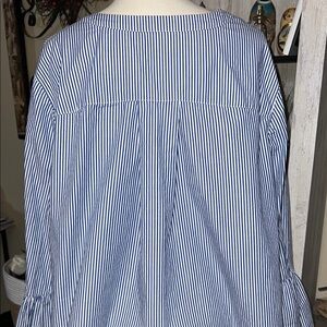 Caslon Blue and White Graphic Bell Sleeve Blouse stripped and boho style