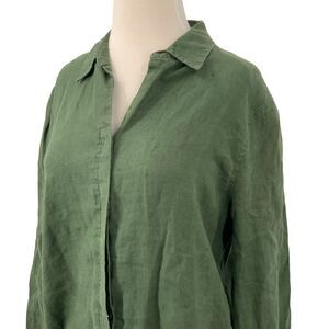 Apostrophe Womens Long Sleeve Linen Button-Down Shirt Olive Green Casual Size 10