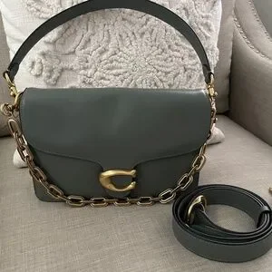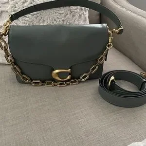 Coach Chain Tabby Shoulder Bag! Beautiful and my favorite color! This is in a nice sage green color. The leather is soft and slouchy, perfect for fitting your daily essentials and more! It’s in pristine condition. I don’t see any visible call outs! It’s so nice. This will come with the original dust bag! The price is firm for this one! That's $100 off of the original price, for a bag that was used once!