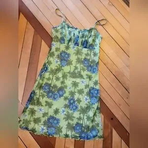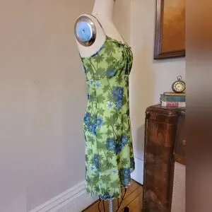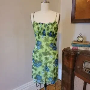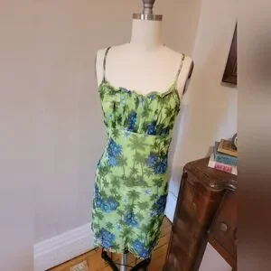 Vintage Y2k Green Tropical Mesh Dress 2000s Millenium Medium