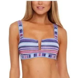 Shimmering stripes bring beachy texture and a mix of colors to this sultry bikini top detailed with a notched neckline.