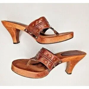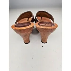 Vintage 90s y2k Bratz MIA Brown Leather Wood Sole Slides Heeled Sandals 7 EUC