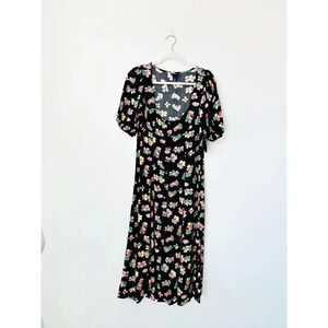 NWT Scoop Black Floral Button Front Midi Dress Size M