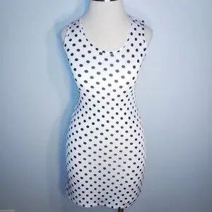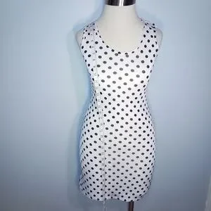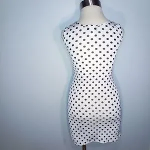 OBJEX DRESS M Sleeveless Bodycon White Black polka dots Short Casual