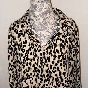 Halogen Leopard Print Button-Up Blouse
