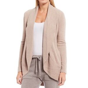 Barefoot Dreams is known for their super soft cardigans! Stay cozy and stylish with this elegant beige open front cardigan. Perfect for layering, this sweater adds a touch of sophistication to any outfit.