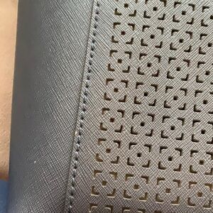 This classic navy Kate Spade bag is the perfect work or casual companion. Its structure permits it to stand upright even when full, and its capacious main, organizer, and deep front slip pockets hold all the things.