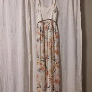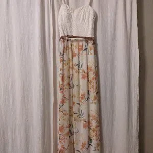 Beautiful, elegant dress, full length, top is elastic, adjustable straps, cute belt!