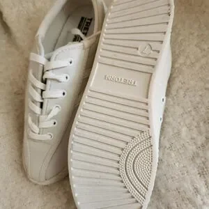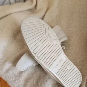 Stylish white casual sneakers. Perfect for everyday wear. Bought , tried, never actually worn out. To narrow for me. Leather.